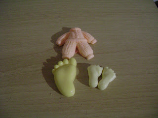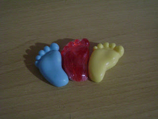 Algumas opções, são esses mini sabonetes em formatos de "pézinhos" ou mini macacão...