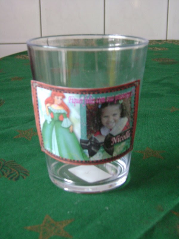 Copos personalizados, tudo com o tema da festa; "A Pequena Sereia"