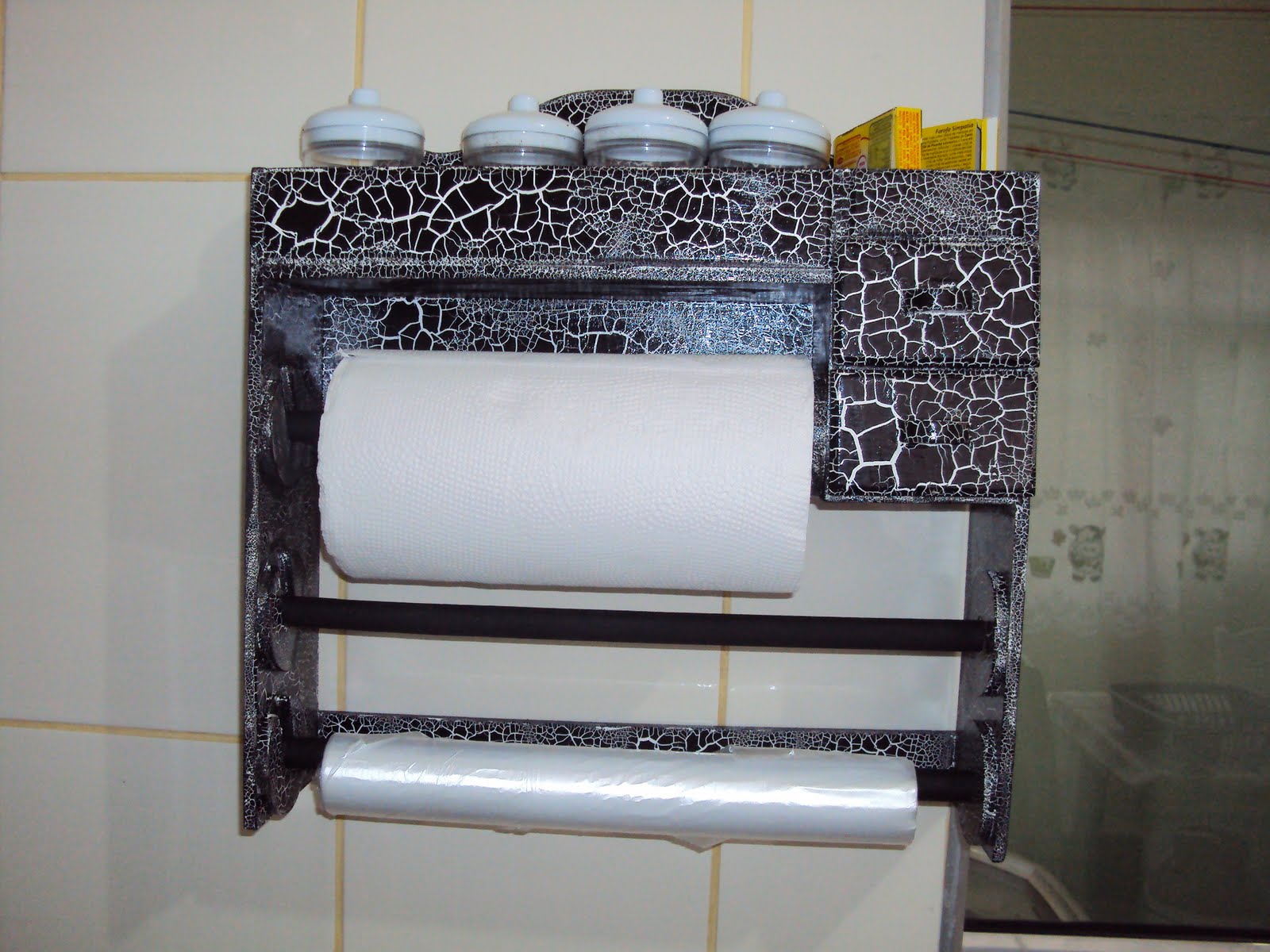 Dá para colocar os temperos, o papel toalha,o papel alumínio, e o filme plástico