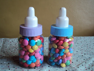Achei um charme essas mamadeirinhas recheadas de doces...