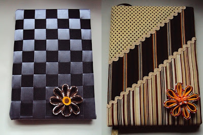 O 1º feito com fita de cetim nas cores cinza e preto e o 2º feito com tecidos de algodão e detalhe com flor de viés e sianinhas.