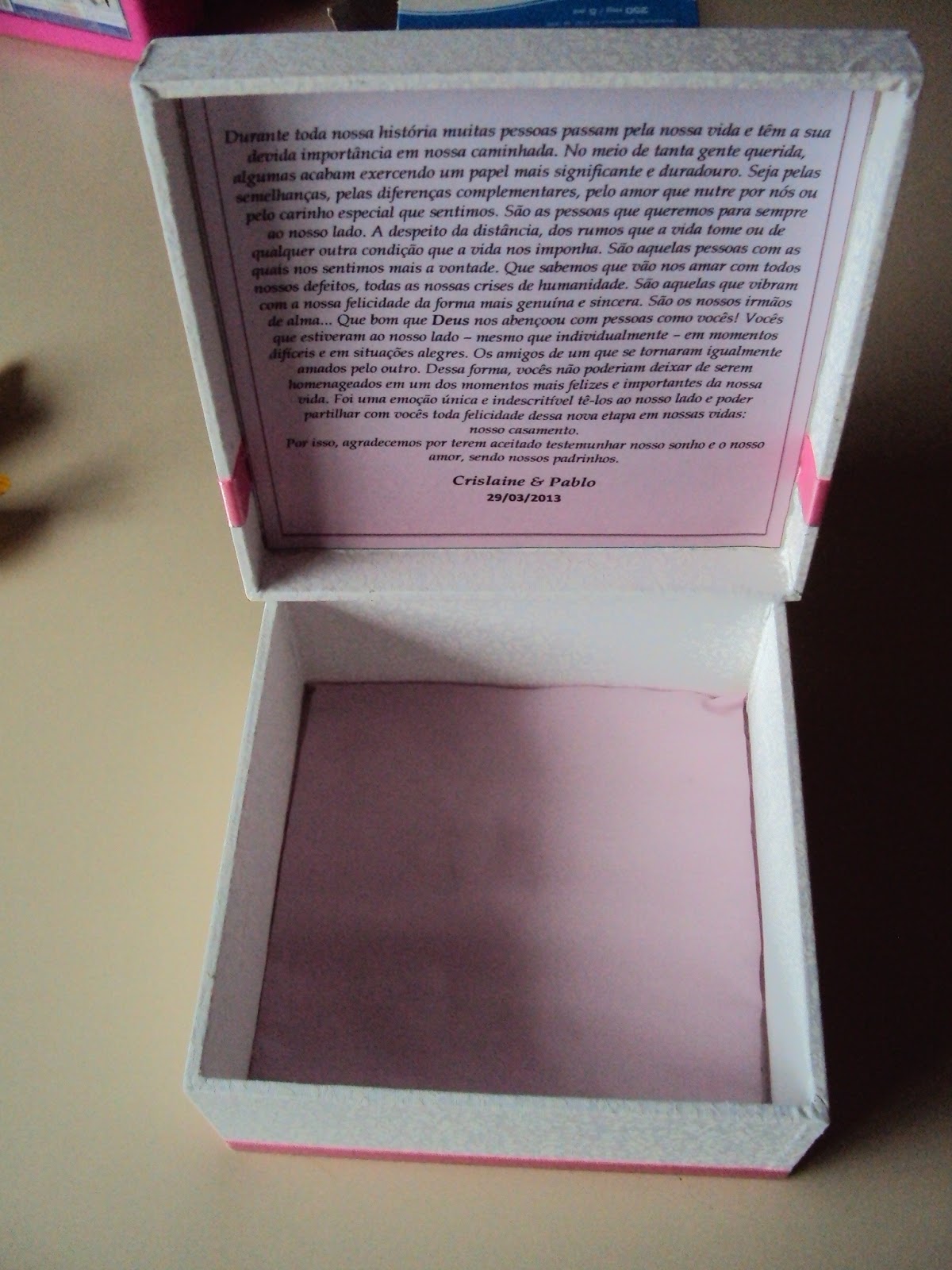 Fiz essas caixas para presentear as madrinhas de casamento da Crislaine e do Pablo, lá de Vila Velha - ES.