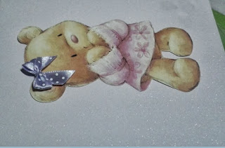 Caixa em mdf, com decoupagem e nome em mdf cortado a laser, detalhes em fitas de cetim.