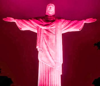A ação de iluminar de rosa monumentos, prédios públicos, pontes, teatros e etc. surgiram posteriormente, e não há uma informação oficial, de como, quando e onde foi efetuada a primeira iluminação. O importante é que foi uma forma prática para que o Outubro Rosa tivesse uma expansão cada vez mais abrangente para a população e que, principalmente, pudesse ser replicada em qualquer lugar, bastando apenas adequar a iluminação já existente.