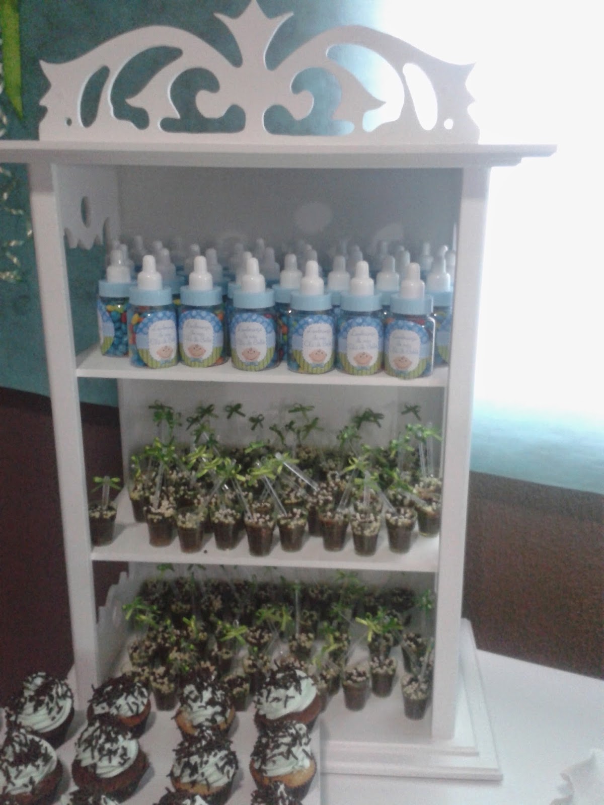 | Móvel em mdf, vazado onde foram acondicionadas guloseimas e lembrancinhas |